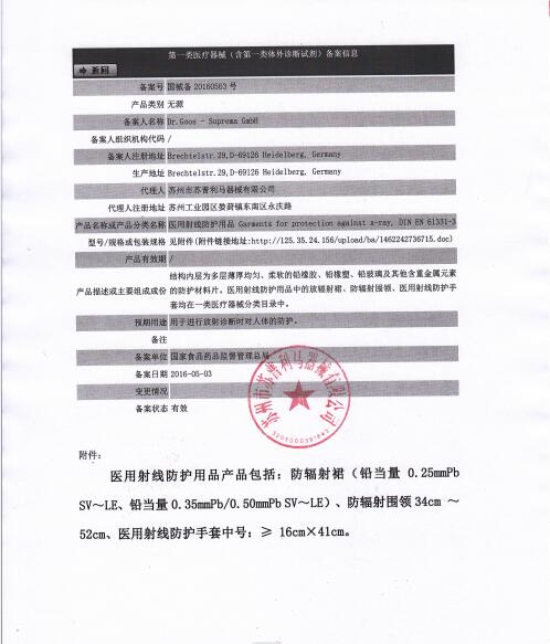 蘇州市蘇普利馬器械有限公司是專業(yè)從事醫(yī)用X射線防護(hù)系列用品、裝置、代理德國Dr.Goos-Suprema Gmbh.顧斯博士-蘇普利馬有限公司生產(chǎn)的原裝進(jìn)口鉛衣及醫(yī)用觀片燈的生產(chǎn)銷售企業(yè).生產(chǎn)的X射線防護(hù)圍裙均來自美國SHIELDING公司的最新型超薄型防護(hù)材料,,具有防護(hù)性能可靠、穿戴舒適、輕便柔軟、操作自如等諸多優(yōu)點(diǎn).產(chǎn)品均通過相關(guān)X射線檢測機(jī)構(gòu)的檢測,達(dá)到產(chǎn)品標(biāo)準(zhǔn)的要求.X射線醫(yī)用膠片觀察燈。是采用全LFD燈光技術(shù)。具有重量輕,光源均勻,亮度高,無頻閃,不變型,使用壽命長等特點(diǎn)。均取得了生產(chǎn)許可及醫(yī)查看更多>>